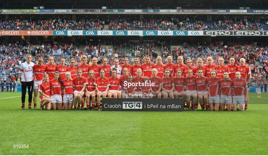 28 September 2014; The Cork squad ahead of the TG4 All-Ireland Ladies Football Senior Championship Final match between Cork and Dublin at Croke Park in Dublin. Photo by Ramsey Cardy/Sportsfile
