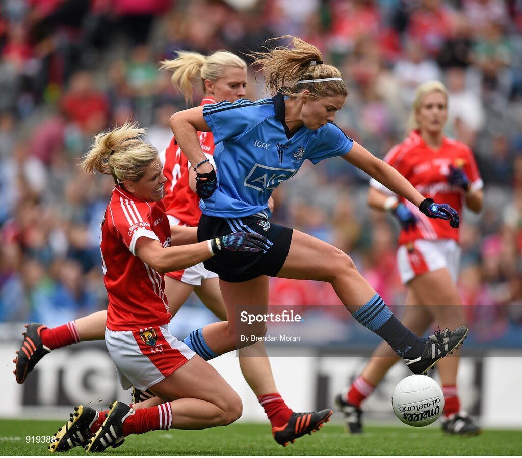 28 September 2014; Natalia Hyland, Dublin, in action against Angela Walsh, Cork. TG4 All-Ireland Ladies Football Senior Championship Final, Cork v Dublin. Croke Park, Dublin. Picture credit: Brendan Moran / SPORTSFILE