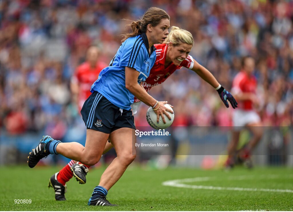 28 September 2014; Noelle Healy, Dublin, in action against Angela Walsh, Cork. TG4 All-Ireland Ladies Football Senior Championship Final, Cork v Dublin. Croke Park, Dublin. Picture credit: Brendan Moran / SPORTSFILE