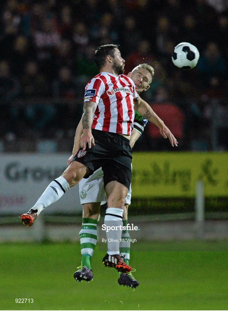 7 October 2014; Rory Patterson, Derry City, in action against Conor Kenna, Shamrock Rovers. FAI Ford Cup Semi-Final Replay, Derry City v Shamrock Rovers, Brandywell, Derry. Picture credit: Oliver McVeigh / SPORTSFILE