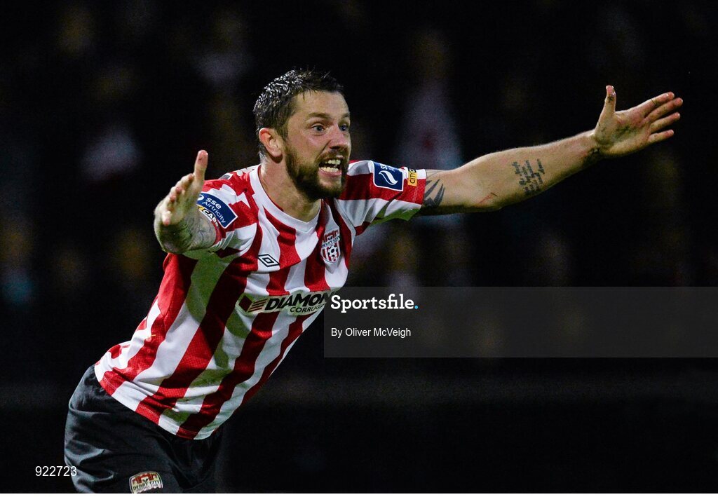 7 October 2014; Rory Patterson, Derry City, appeals for a penalty. FAI Ford Cup Semi-Final Replay, Derry City v Shamrock Rovers, Brandywell, Derry. Picture credit: Oliver McVeigh / SPORTSFILE