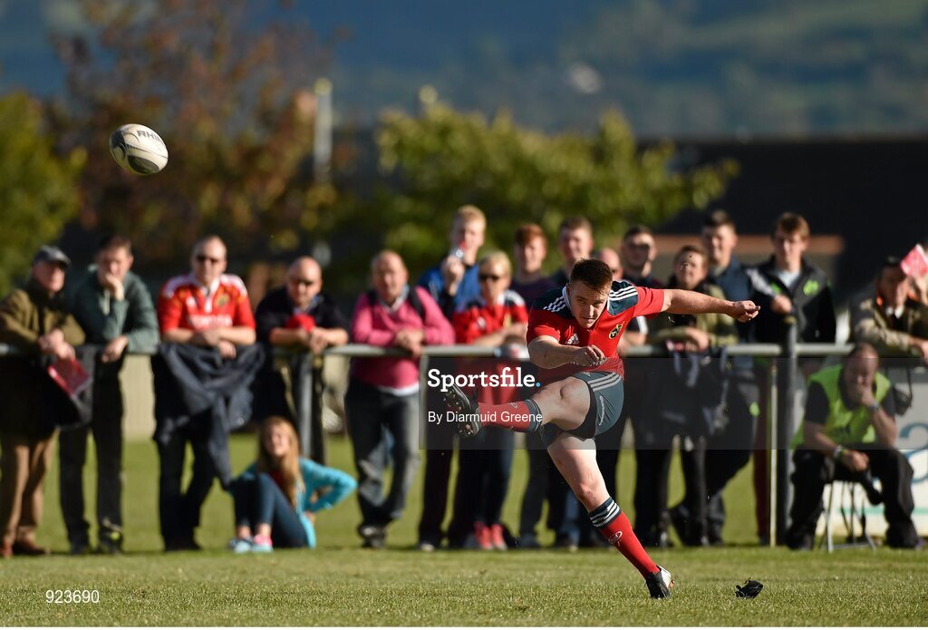 11 October 2014; Rory Scannell, Munster A, kicks a long-range penalty just before half-time. British & Irish Cup, Round 1, Munster A v Moseley. Clonmel RFC, Clonmel, Co. Tipperary. Picture credit: Diarmuid Greene / SPORTSFILE