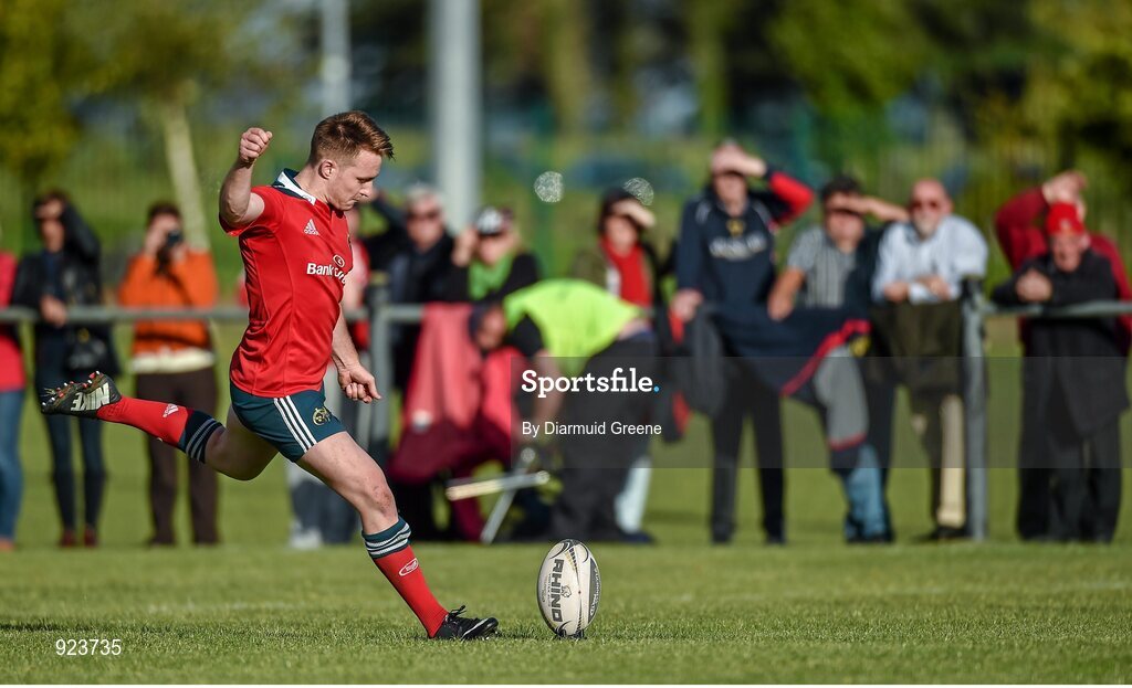 11 October 2014; Rory Scannell, Munster A, kicks a conversion. British & Irish Cup, Round 1, Munster A v Moseley. Clonmel RFC, Clonmel, Co. Tipperary. Picture credit: Diarmuid Greene / SPORTSFILE