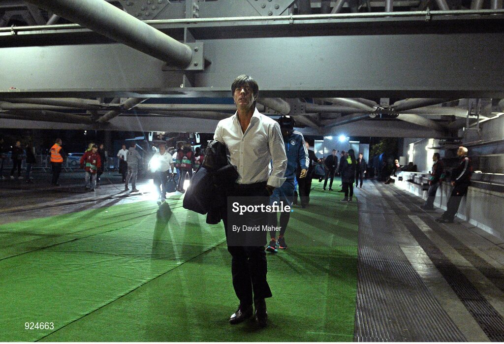 14 October 2014; Germany head coach Joachim Loew arrives at the stadium ahead of the game. UEFA EURO 2016 Championship Qualifer, Group D, Germany v Republic of Ireland, Veltins Stadium, Gelsenkirchen, Germany. Picture credit: David Maher / SPORTSFILE