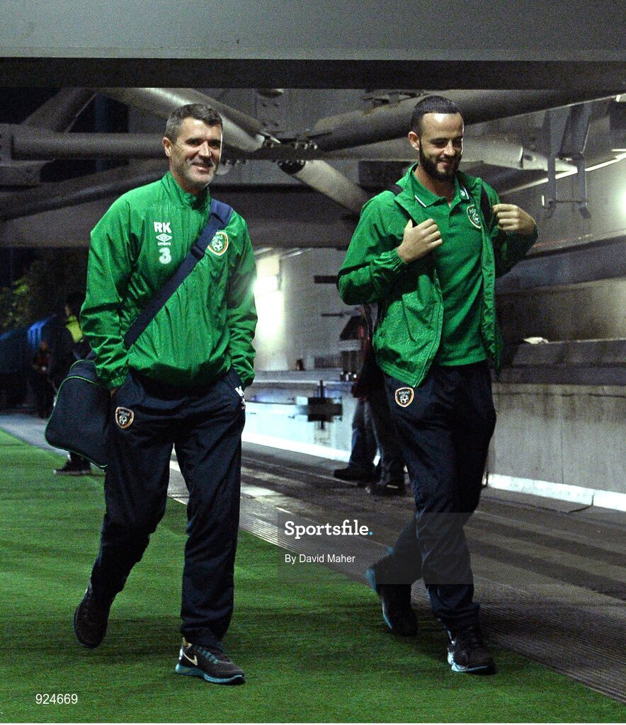 14 October 2014; Republic of Ireland assistant manager Roy Keane, left, and Marc Wilson arrive at the stadium ahead of the game. UEFA EURO 2016 Championship Qualifer, Group D, Germany v Republic of Ireland, Veltins Stadium, Gelsenkirchen, Germany. Picture credit: David Maher / SPORTSFILE