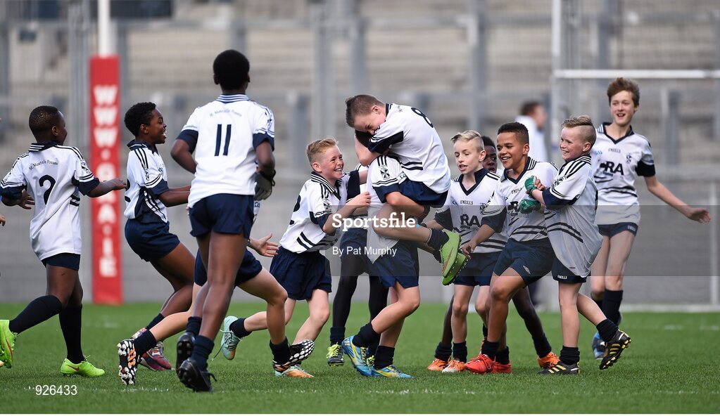 23 October 2014; The St. Martin De Porres, Aylesbury, players celebrate at the final whistle after winning the Corn Matt Griffin final. Allianz Cumann na mBunscol Finals, Croke Park, Dublin. Picture credit: Pat Murphy / SPORTSFILE