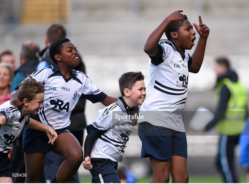 23 October 2014; John Bosco Ezidinma, St. Martin De Porres, Aylesbury, leads the celebrations at the final whistle after winning the Corn Matt Griffin final. Allianz Cumann na mBunscol Finals, Croke Park, Dublin. Picture credit: Pat Murphy / SPORTSFILE