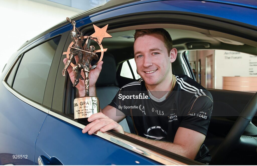 24 October 2014; Kilkenny hurler Richie Hogan with his 2014 GAA GPA All-Star Player of the Year award. Convention Centre, Dublin. Photo by Sportsfile