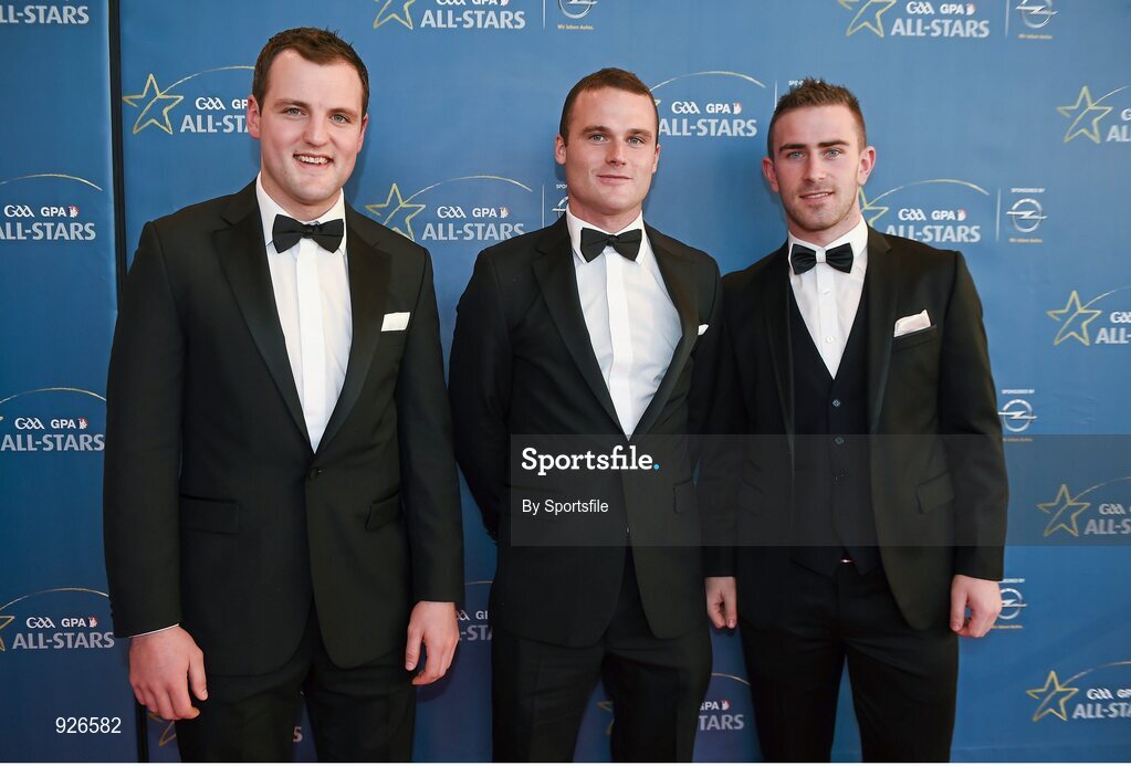 24 October 2014; Doengal footballers, from left, Michael Murphy, Neil McGee and Paddy McBrearty at the GAA GPA All-Star Awards 2014, sponsored by Opel, in the Convention Centre, Dublin. Photo by Sportsfile