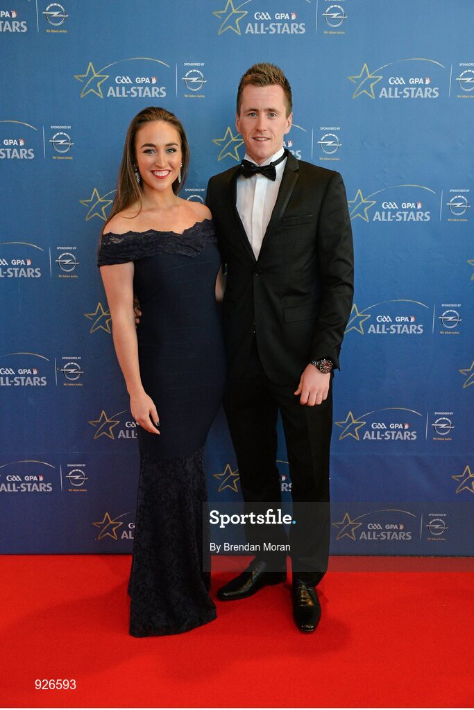 24 October 2014; Mayo footballer Cillian O'Connor and Ciara Ruddy at the GAA GPA All-Star Awards 2014, sponsored by Opel, in the Convention Centre, Dublin. Picture credit: Brendan Moran / SPORTSFILE