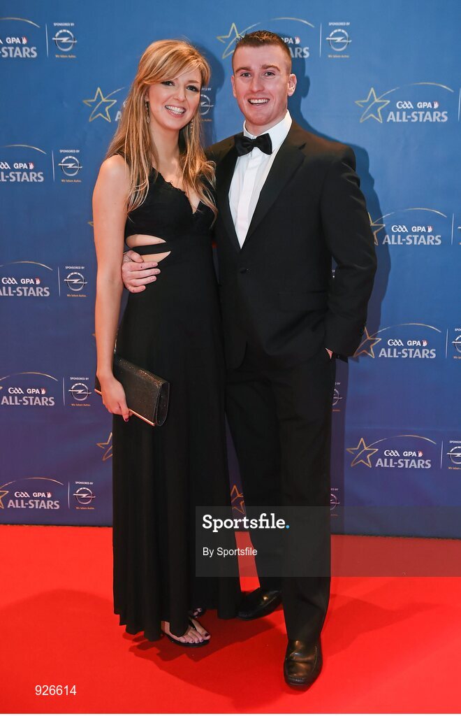 24 October 2014; Leitrim hurler David McGovern and Isabelle Keogh at the GAA GPA All-Star Awards 2014, sponsored by Opel, in the Convention Centre, Dublin. Photo by Sportsfile