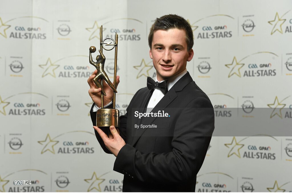 24 October 2014; Kerry footballer Paul Murphy with his 2014 GAA GPA All-Star award at the 2014 GAA GPA All-Star Awards, sponsored by Opel. Convention Centre, Dublin. Photo by Sportsfile