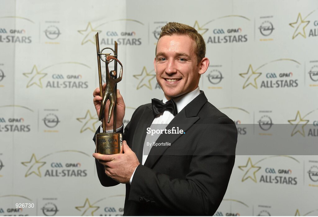 24 October 2014; Kilkenny hurler Richie Hogan with his 2014 GAA GPA All-Star award at the 2014 GAA GPA All-Star Awards, sponsored by Opel. Convention Centre, Dublin. Photo by Sportsfile