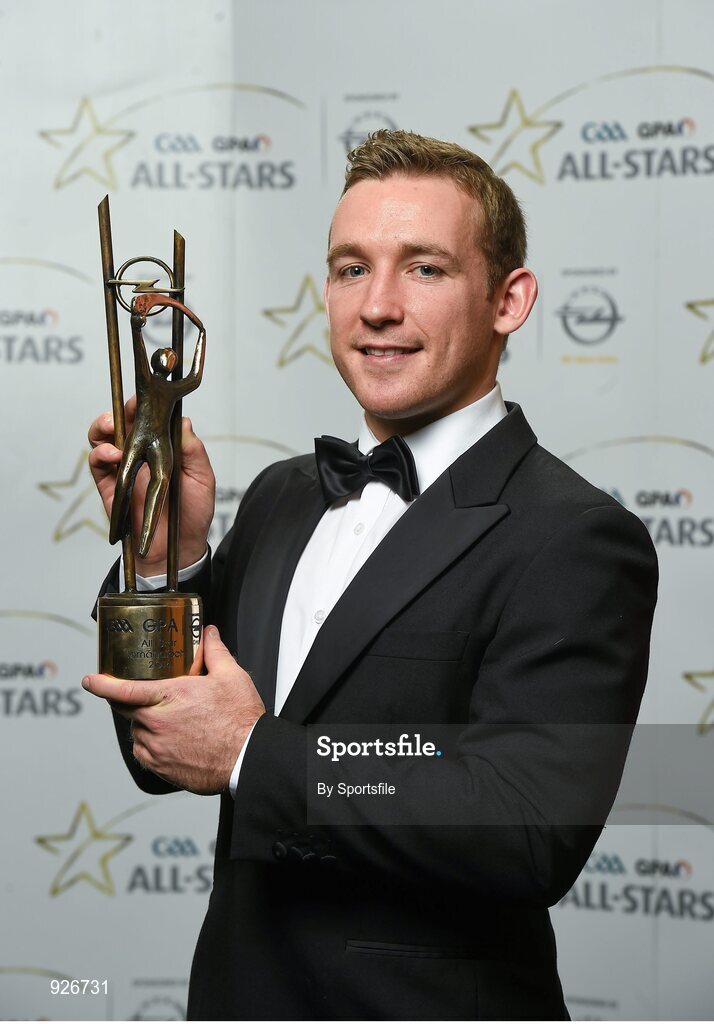 24 October 2014; Kilkenny hurler Richie Hogan with his 2014 GAA GPA All-Star award at the 2014 GAA GPA All-Star Awards, sponsored by Opel. Convention Centre, Dublin. Photo by Sportsfile