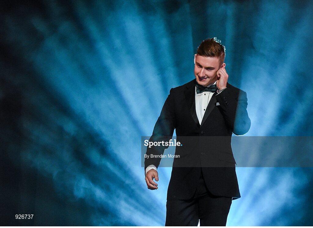 24 October 2014; Kerry's James O'Donoghue walks out to receive his Footballer of the Year award at the 2014 GAA GPA All-Star Awards, sponsored by Opel. Convention Centre, Dublin. Picture credit: Brendan Moran / SPORTSFILE