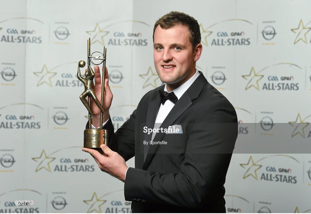 24 October 2014; Donegal footballer Michael Murphy with his 2014 GAA GPA All-Star award at the 2014 GAA GPA All-Star Awards, sponsored by Opel. Convention Centre, Dublin. Photo by Sportsfile