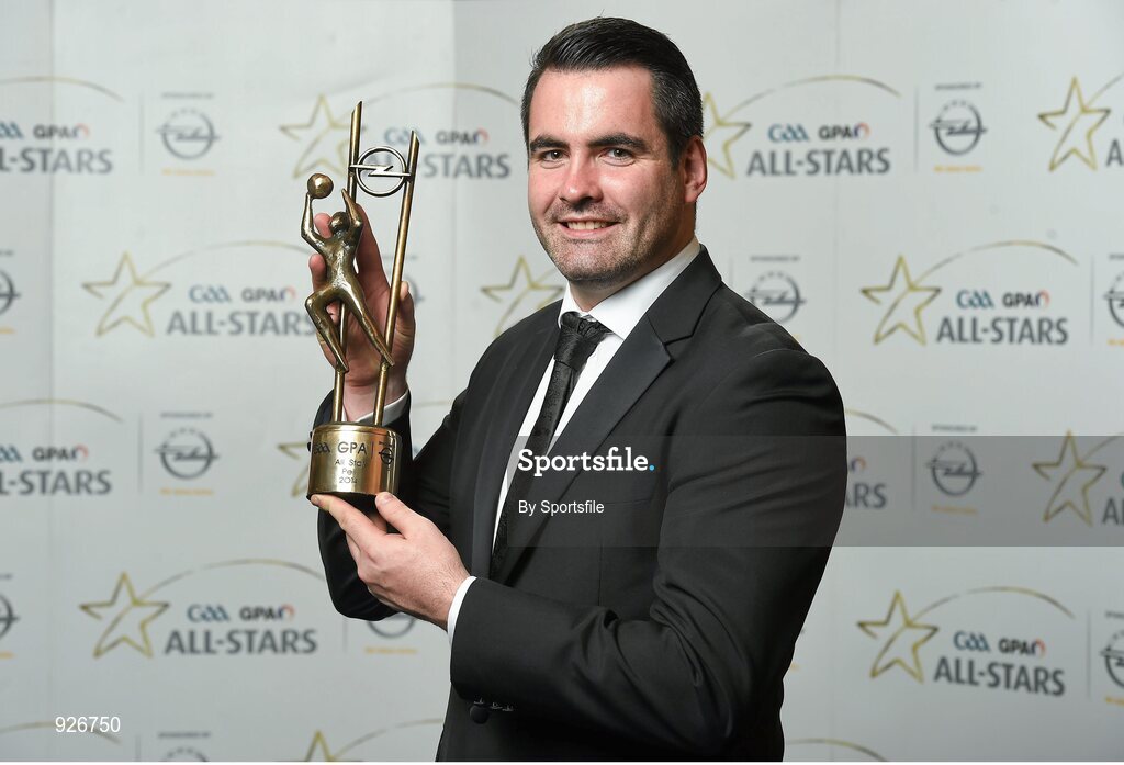 24 October 2014; Donegal footballer Paul Durcan with his 2014 GAA GPA All-Star award at the 2014 GAA GPA All-Star Awards, sponsored by Opel. Convention Centre, Dublin. Photo by Sportsfile