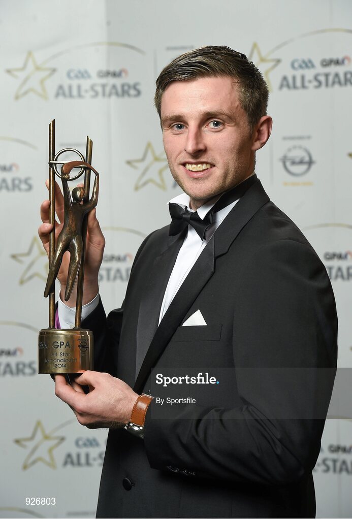 24 October 2014; Tipperary hurler Shane McGrath with his 2014 GAA GPA All-Star award at the 2014 GAA GPA All-Star Awards, sponsored by Opel. Convention Centre, Dublin. Photo by Sportsfile