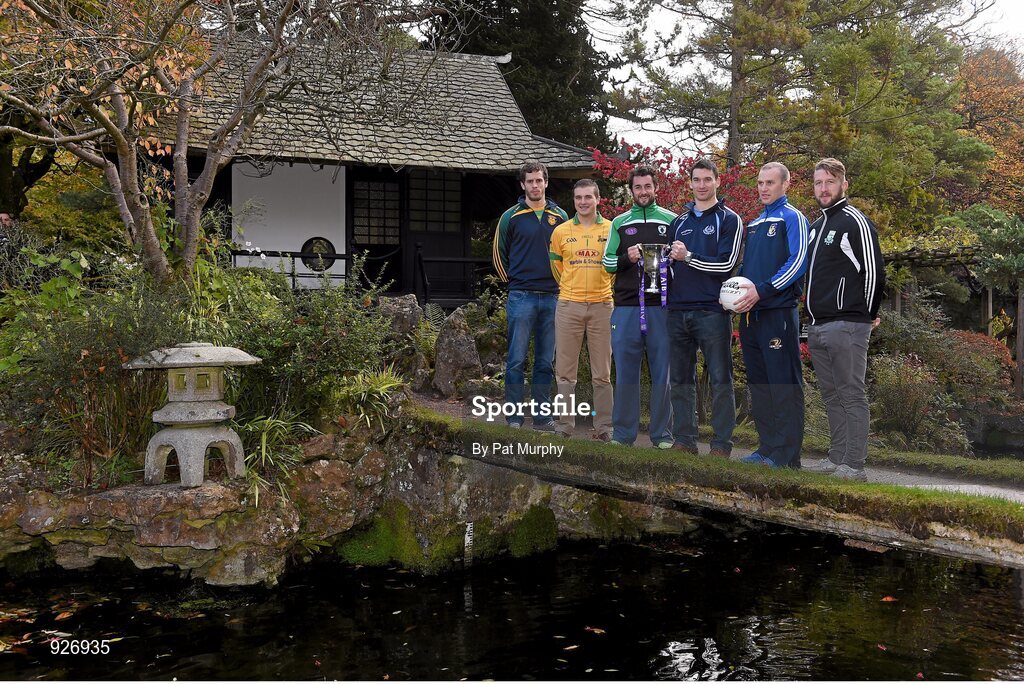 25 October 2014; The Leinster GAA Club Championship was launched today, hosted by Irish National Stud and Gardens. Pictured at the launch are football club captains, from left, Brendan Murphy, Rathvilly, Co. Carlow, Kenneth Garry, vice-captain, Rhode, Co. Offaly, Joe McCormack, Emmet Og Killoe, Co. Longford, Dessie Brennan, Eadestown GAA, Niall McKeigue, Navan O'Mahony's, Co. Meath, and Cahir Healy, Portlaoise, Co. Laois. Irish National Stud and Japanese Gardens, Tully, Co. Kildare. Picture credit: Pat Murphy / SPORTSFILE