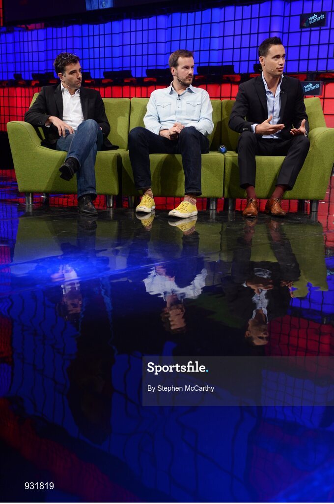 6 November 2014; Nicolas Brusson, Co-founder, BlaBlaCar; Taavet Hinrikus, Co-founder, TransferWise; and Jitse Groen, CEO, takeaway.com, discuss Outside the Valley: Europe on the centre stage during Day 3 of the 2014 Web Summit in the RDS, Dublin, Ireland. Picture credit: Stephen McCarthy / SPORTSFILE / Web Summit