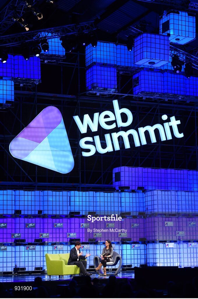 6 November 2014; Gavin Andresen, Chief Scientist, Bitcoin Foundation, in Conversation with Lisa Fleisher, Reporter, The Wall Street Journal, on the centre stage during Day 3 of the 2014 Web Summit in the RDS, Dublin, Ireland. Picture credit: Stephen McCarthy / SPORTSFILE / Web Summit