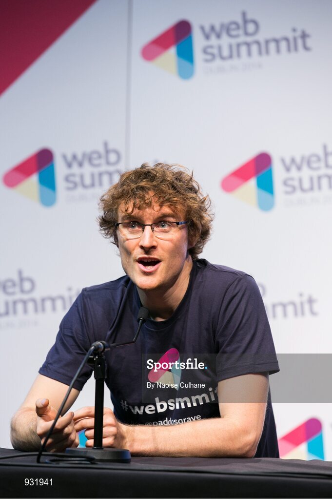 6 November 2014; Paddy Cosgrave, Founder and CEO, Web Summit, on the centre stage during Day 3 of the 2014 Web Summit in the RDS, Dublin, Ireland. Picture credit: Naoise Culhane / SPORTSFILE / Web Summit