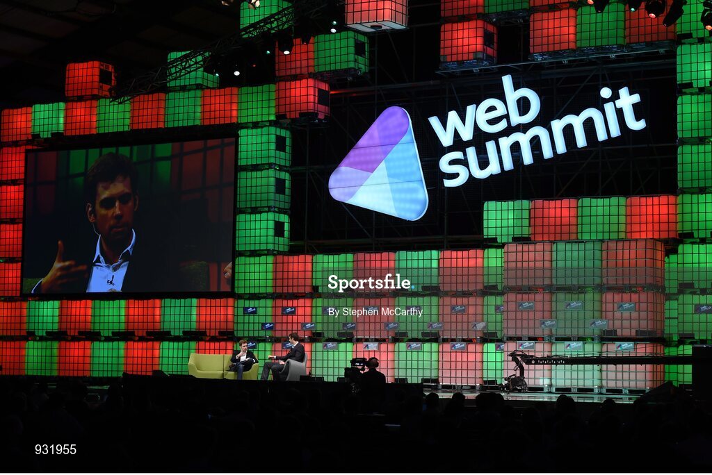 6 November 2014; Oisin Hanrahan, Founder, Handybook, in conversation with Steve Bertoni, Associate Editor, Forbes, on the centre stage during Day 3 of the 2014 Web Summit in the RDS, Dublin, Ireland. Picture credit: Stephen McCarthy / SPORTSFILE / Web Summit