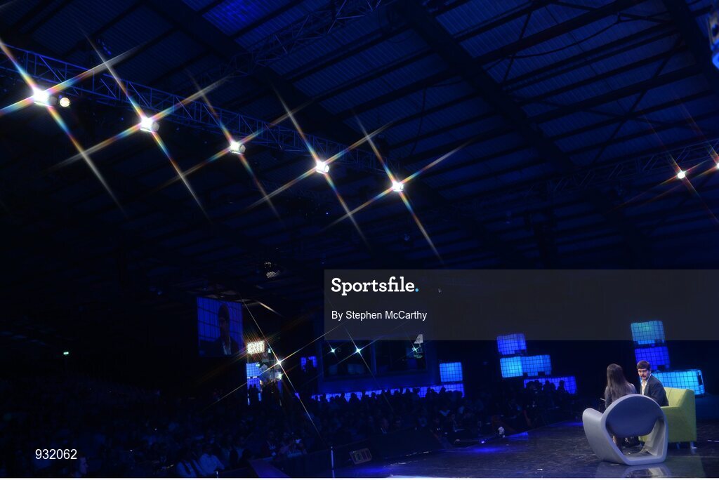 6 November 2014; Gavin Andresen, Chief Scientist, Bitcoin Foundation, in Conversation with Lisa Fleisher, Reporter, The Wall Street Journal, on the centre stage during Day 3 of the 2014 Web Summit in the RDS, Dublin, Ireland. Picture credit: Stephen McCarthy / SPORTSFILE / Web Summit