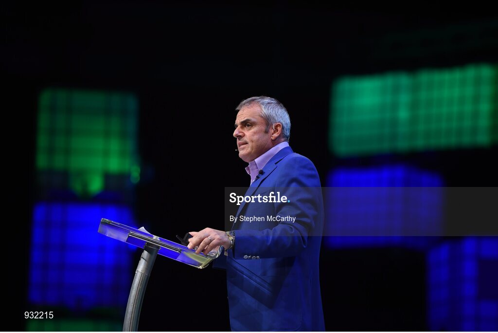 6 November 2014; Paul McGinley, Ryder Cup Captain, Team Europe, discusses The Winning Mindset on the centre stage during Day 3 of the 2014 Web Summit in the RDS, Dublin, Ireland. Picture credit: Stephen McCarthy / SPORTSFILE / Web Summit
