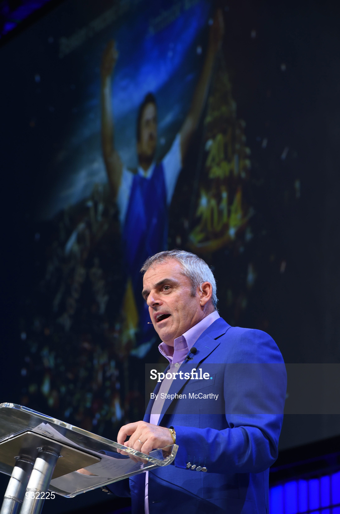 6 November 2014; Paul McGinley, Ryder Cup Captain, Team Europe, discusses The Winning Mindset on the centre stage during Day 3 of the 2014 Web Summit in the RDS, Dublin, Ireland. Picture credit: Stephen McCarthy / SPORTSFILE / Web Summit