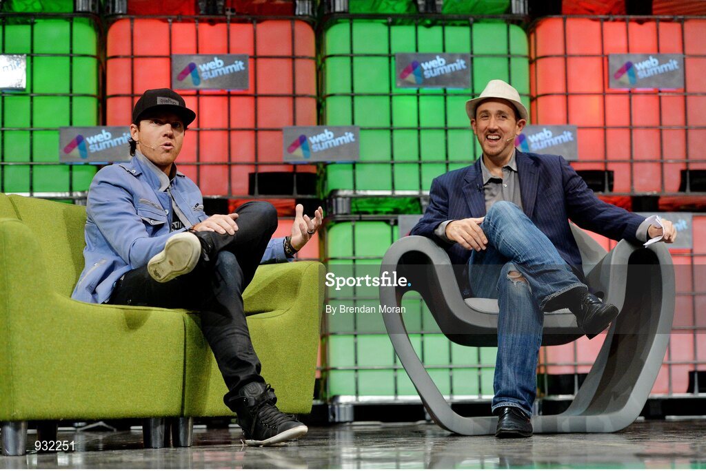 6 November 2014; Ryan Smith, Founder, Qualtrics, in Conversation with Robert Shrimsley, The Financial Times, on the centre stage during Day 3 of the 2014 Web Summit in the RDS, Dublin, Ireland. Picture credit: Brendan Moran / SPORTSFILE / Web Summit