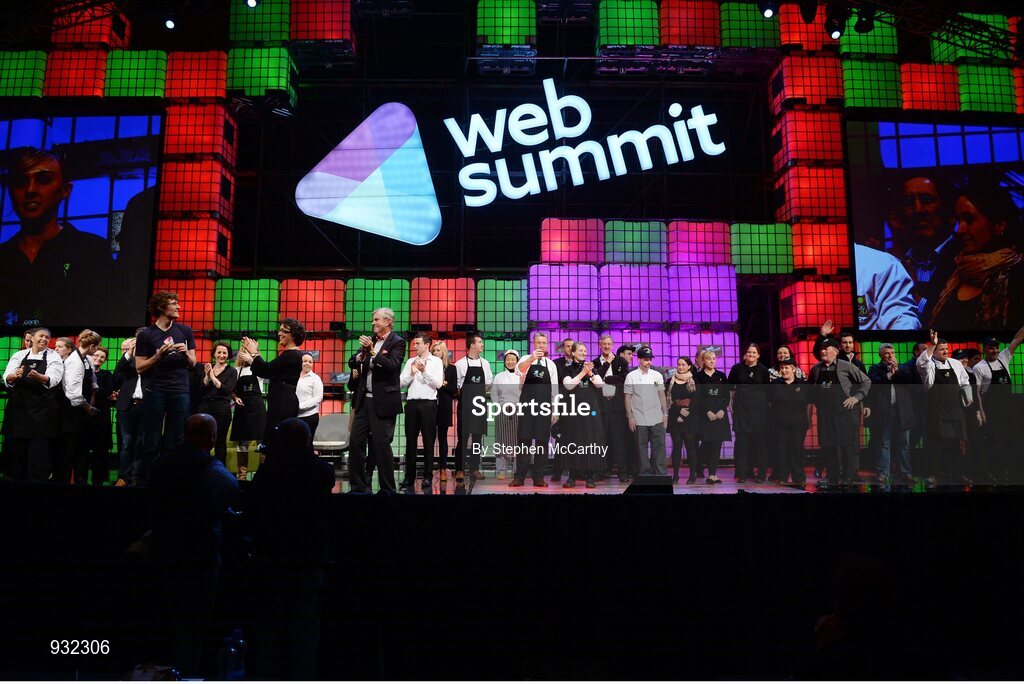 6 November 2014; Chefs from the Food Summit are introduced on the centre stage during Day 3 of the 2014 Web Summit in the RDS, Dublin, Ireland. Picture credit: Stephen McCarthy / SPORTSFILE / Web Summit
