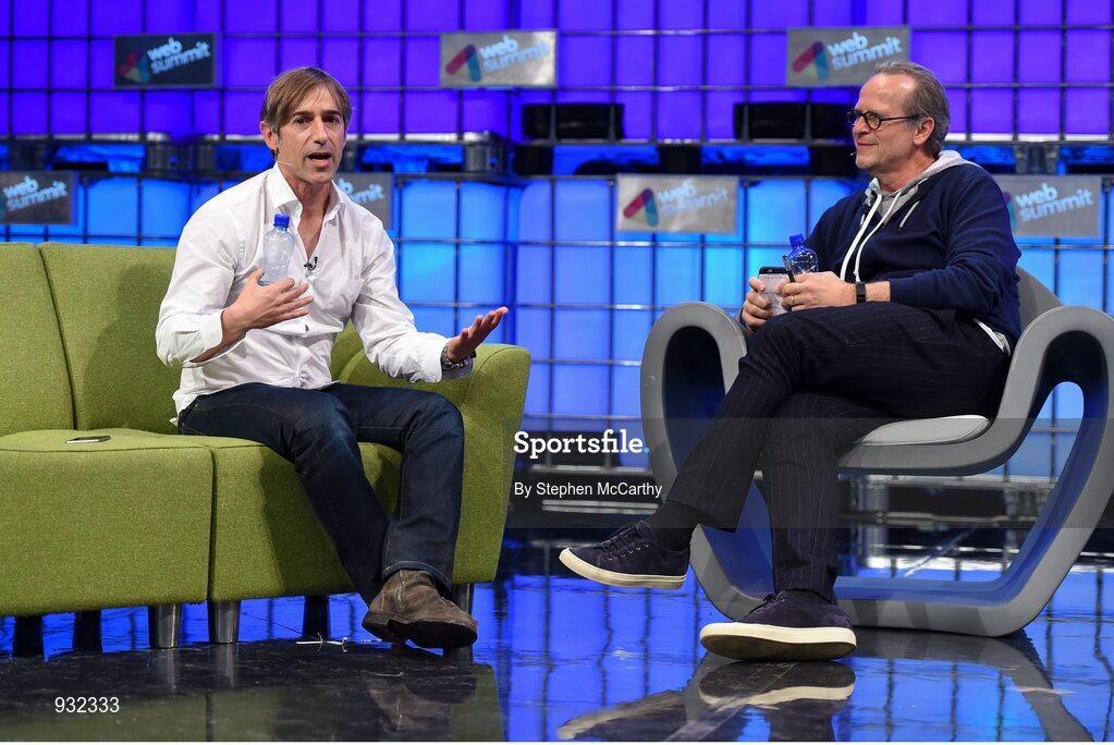 6 November 2014; Mark Pincus, left, Founder, Zynga, Tony Conrad, True Ventures, on the centre stage during Day 3 of the 2014 Web Summit in the RDS, Dublin, Ireland. Picture credit: Stephen McCarthy / SPORTSFILE / Web Summit