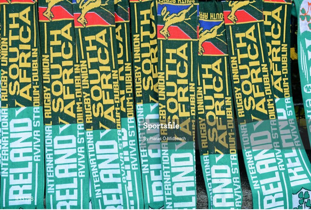 8 November 2014; Scarves on sale by vendors ahead of the game. Guinness Series, Ireland v South Africa, Aviva Stadium, Lansdowne Road, Dublin. Picture credit: Piaras Ó Mídheach / SPORTSFILE