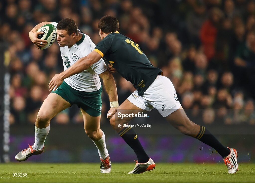 8 November 2014; Robbie Henshaw, Ireland, is tackled by Jan Serfontein, South Africa. Guinness Series, Ireland v South Africa, Aviva Stadium, Lansdowne Road, Dublin. Picture credit: Stephen McCarthy / SPORTSFILE