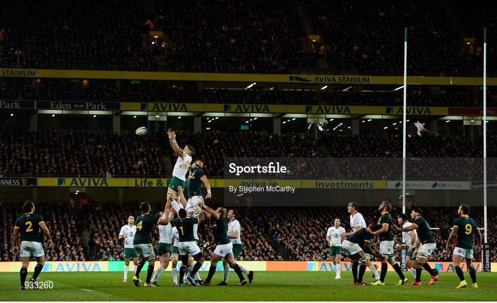 8 November 2014; Jamie Heaslip, Ireland, contests a line out ball with Victor Matfield, South Africa. Guinness Series, Ireland v South Africa, Aviva Stadium, Lansdowne Road, Dublin. Picture credit: Stephen McCarthy / SPORTSFILE
