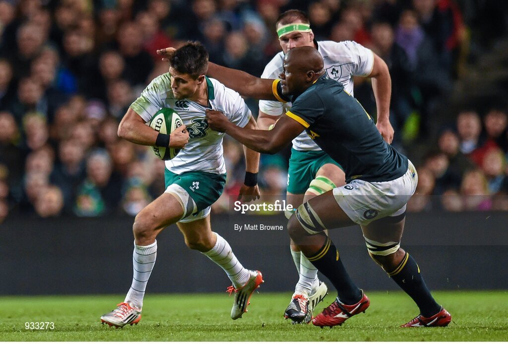 8 November 2014; Conor Murray, Ireland, is tackled by Tendai Mtawarira, South Africa. Guinness Series, Ireland v South Africa, Aviva Stadium, Lansdowne Road, Dublin. Picture credit: Matt Browne / SPORTSFILE