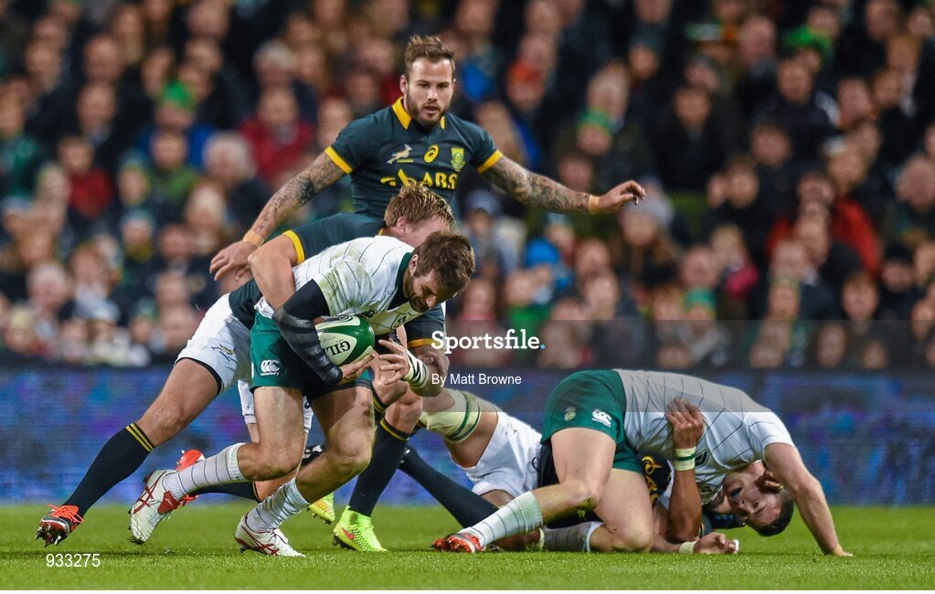 8 November 2014; Jared Payne, Ireland, is tackled by Francois Hougaard, South Africa. Guinness Series, Ireland v South Africa, Aviva Stadium, Lansdowne Road, Dublin. Picture credit: Matt Browne / SPORTSFILE