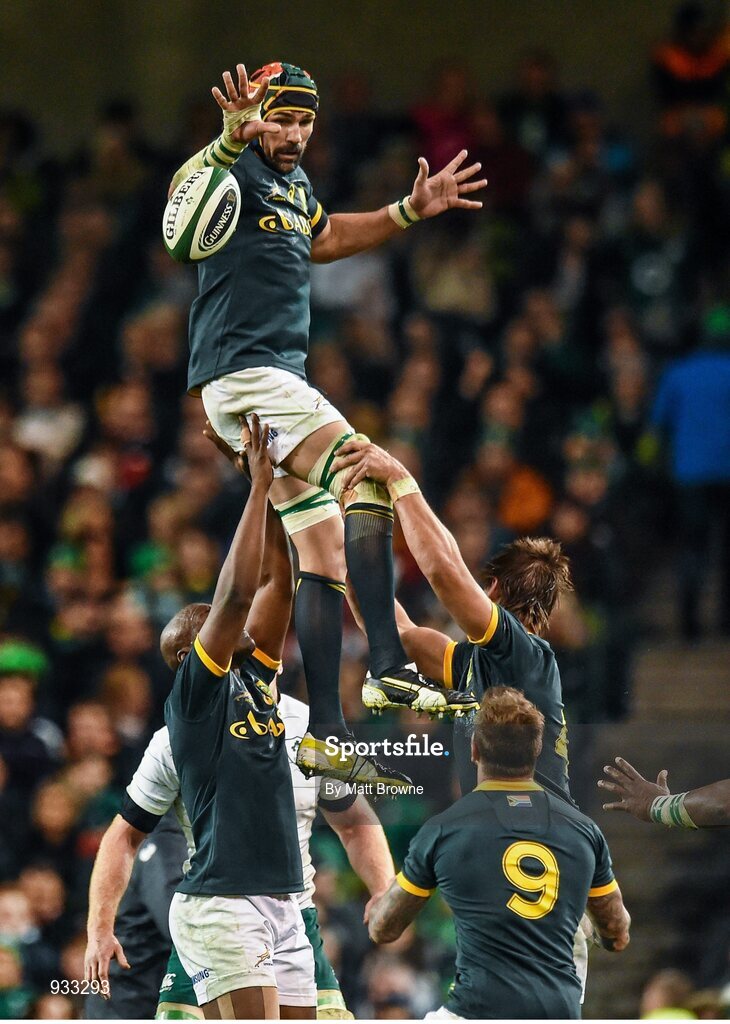 8 November 2014; Victor Matfield, South Africa, wins possession of the ball in a lineout. Guinness Series, Ireland v South Africa, Aviva Stadium, Lansdowne Road, Dublin. Picture credit: Matt Browne / SPORTSFILE
