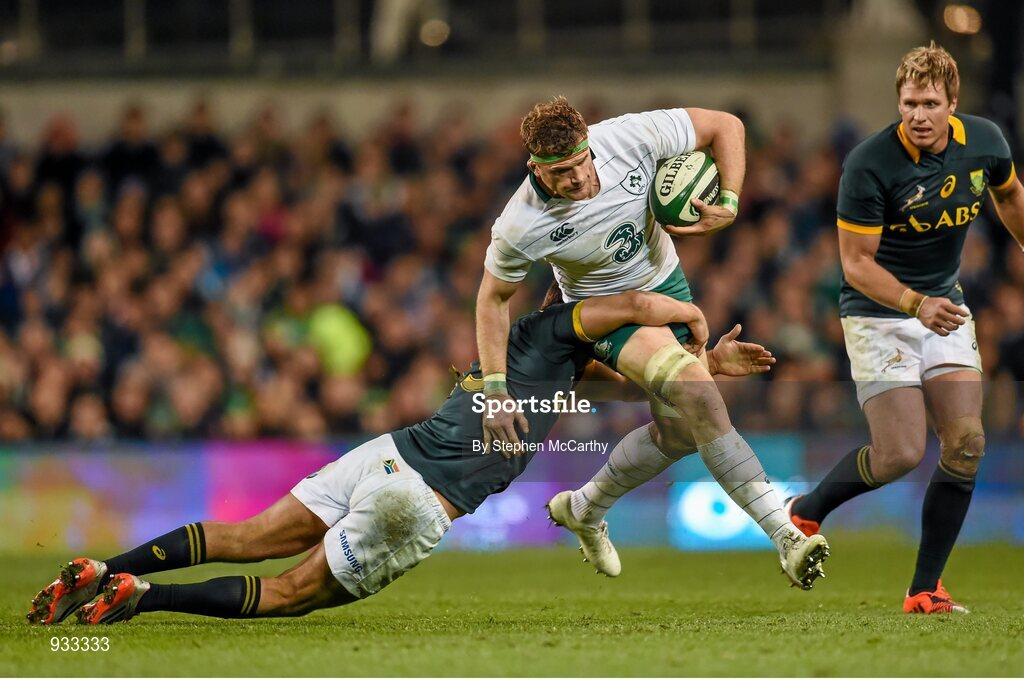 8 November 2014; Jamie Heaslip, Ireland, is tackled by Jan Serfontein, South Africa. Guinness Series, Ireland v South Africa, Aviva Stadium, Lansdowne Road, Dublin. Picture credit: Stephen McCarthy / SPORTSFILE