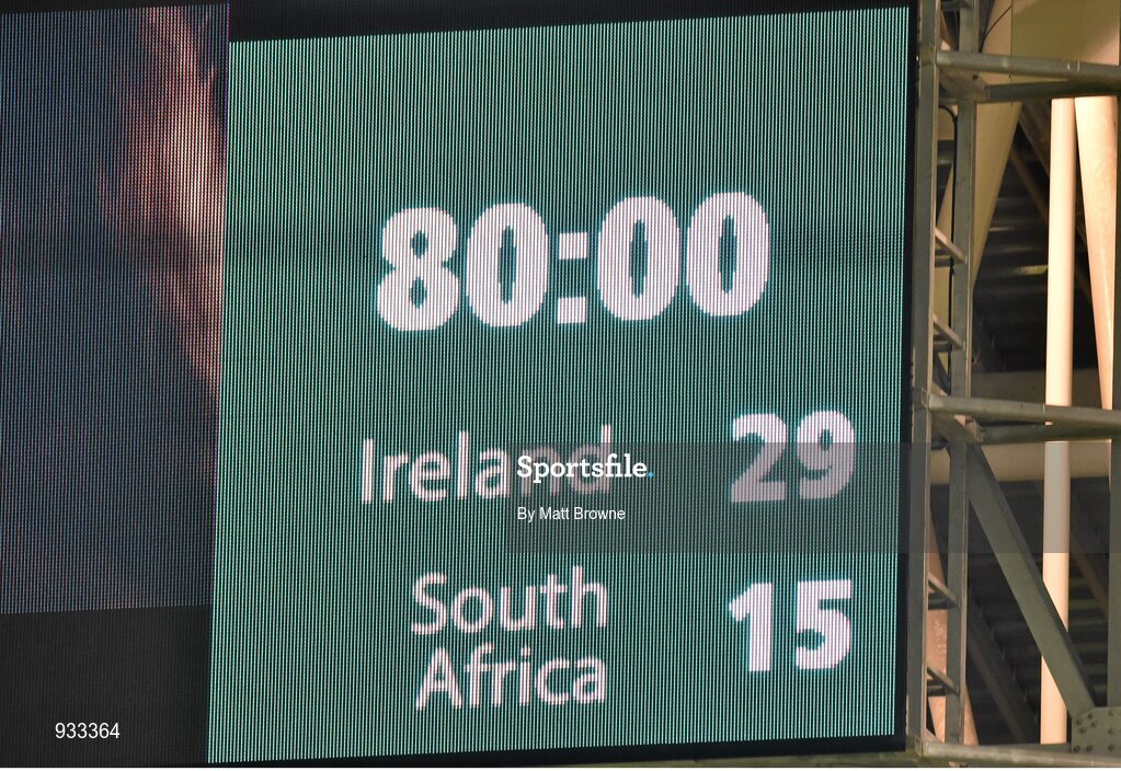 8 November 2014; The scoreboard in the stadium after the final whistle. Guinness Series, Ireland v South Africa, Aviva Stadium, Lansdowne Road, Dublin. Picture credit: Matt Browne / SPORTSFILE