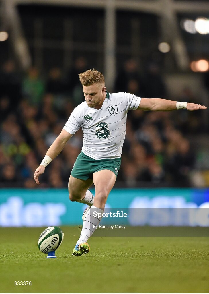 8 November 2014; Ian Madigan, Ireland, kicks a penalty. Guinness Series, Ireland v South Africa, Aviva Stadium, Lansdowne Road, Dublin. Picture credit: Ramsey Cardy / SPORTSFILE