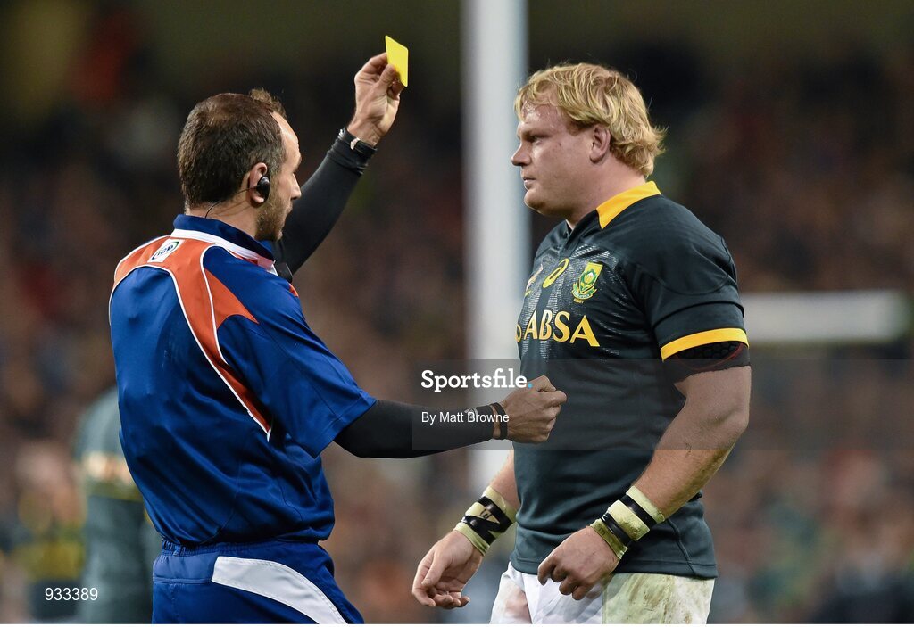 8 November 2014; Adriaan Strauss, South Africa, is shown a yellow card by the referee. Guinness Series, Ireland v South Africa, Aviva Stadium, Lansdowne Road, Dublin. Picture credit: Matt Browne / SPORTSFILE