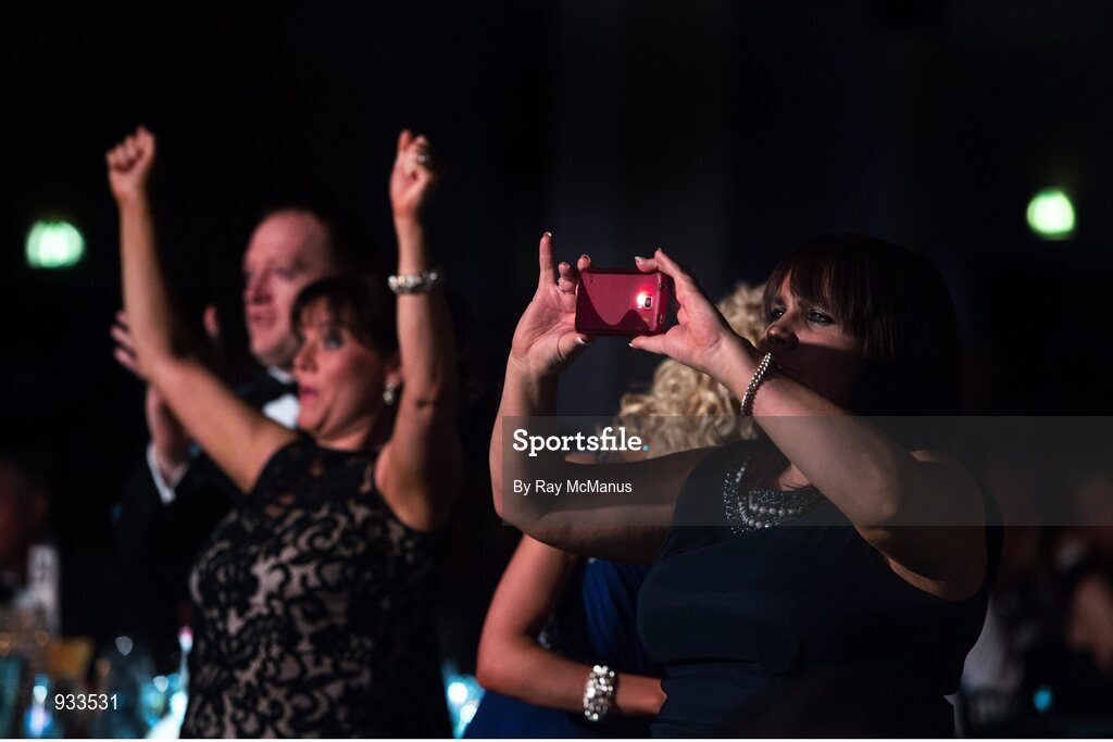 8 November 2014; A guest takes a photo of the winners during the TG4 Ladies Football All-Star Awards 2014, Citywest Hotel, Saggart, Co. Dublin. Picture credit: Ray McManus / SPORTSFILE
