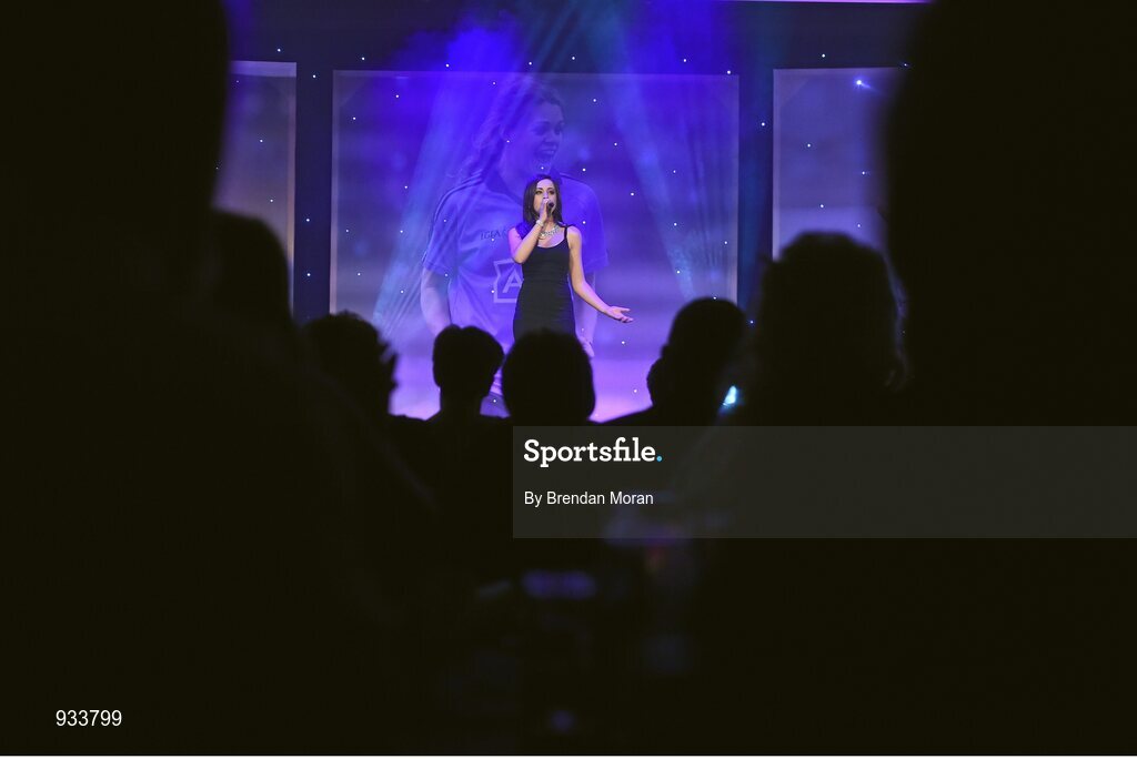 8 November 2014; Singer Melanie McCabe performing during the TG4 Ladies Football All-Star Award. TG4 Ladies Football All-Star Awards 2014, Citywest Hotel, Saggart, Co. Dublin. Picture credit: Brendan Moran / SPORTSFILE
