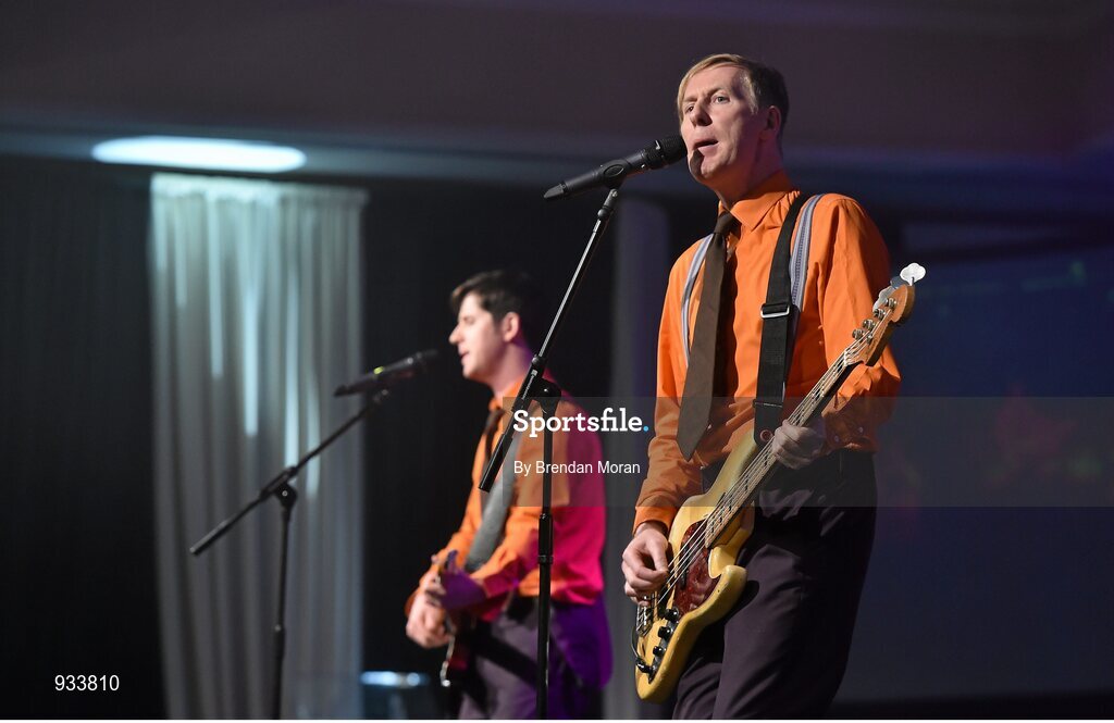 8 November 2014; Paul Linehan of the Frank & Walters performing during the TG4 Ladies Football All-Star Award. TG4 Ladies Football All-Star Awards 2014, Citywest Hotel, Saggart, Co. Dublin. Picture credit: Brendan Moran / SPORTSFILE
