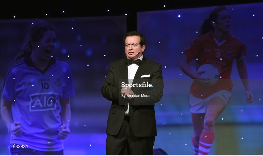 8 November 2014; MC Marty Morrissey speaking during the TG4 Ladies Football All-Star Awards. TG4 Ladies Football All-Star Awards 2014, Citywest Hotel, Saggart, Co. Dublin. Picture credit: Brendan Moran / SPORTSFILE