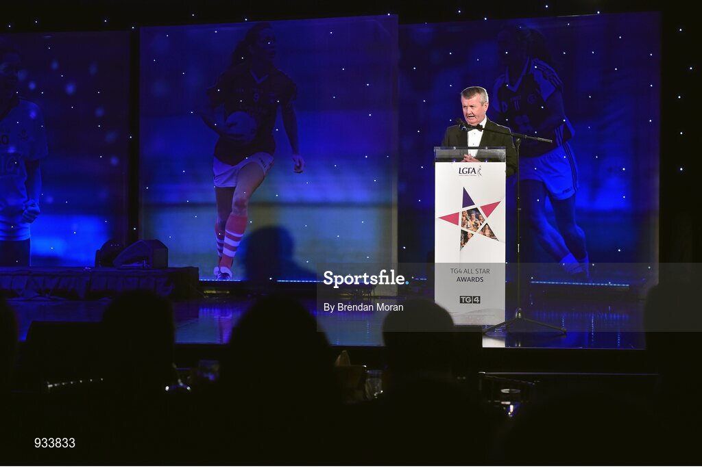 8 November 2014; Pól O Gallchóir, Ceannsaí, TG4, speaking during the awards. TG4 Ladies Football All-Star Awards 2014, Citywest Hotel, Saggart, Co. Dublin. Picture credit: Brendan Moran / SPORTSFILE