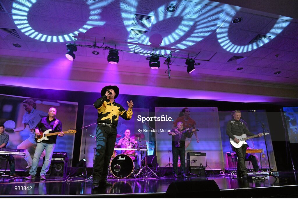 8 November 2014; Trevor Smyth, a Garth Brooks tribute act, performing during the TG4 Ladies Football All-Star Award. TG4 Ladies Football All-Star Awards 2014, Citywest Hotel, Saggart, Co. Dublin. Picture credit: Brendan Moran / SPORTSFILE