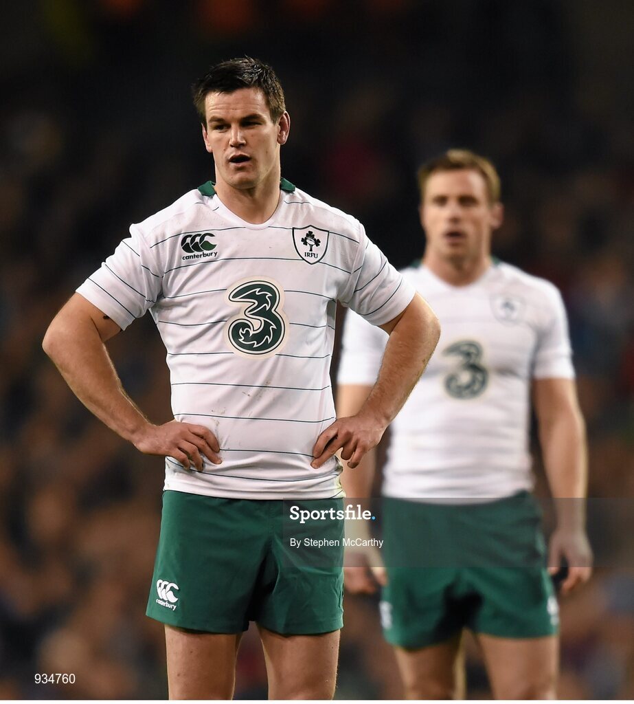 8 November 2014; Jonathan Sexton, left, and Tommy Bowe, right, Ireland. Guinness Series, Ireland v South Africa, Aviva Stadium, Lansdowne Road, Dublin. Picture credit: Stephen McCarthy / SPORTSFILE